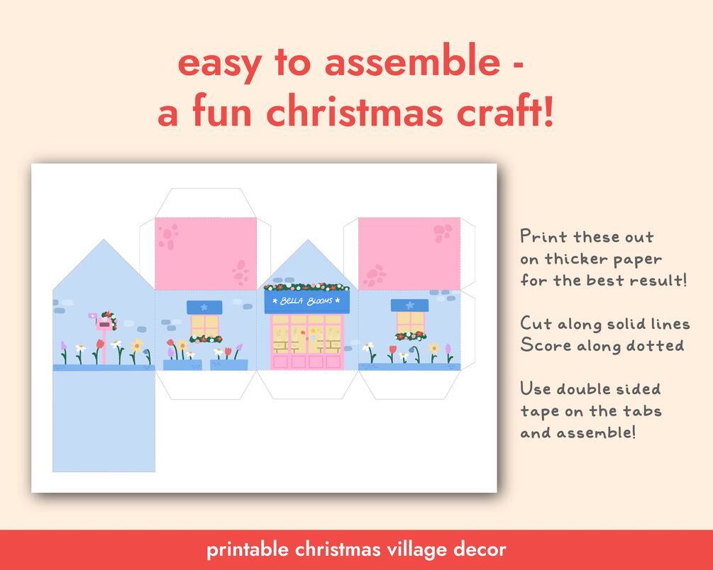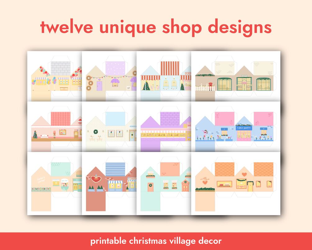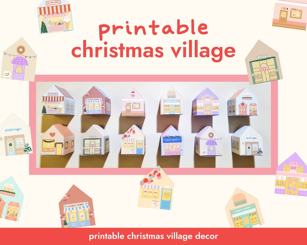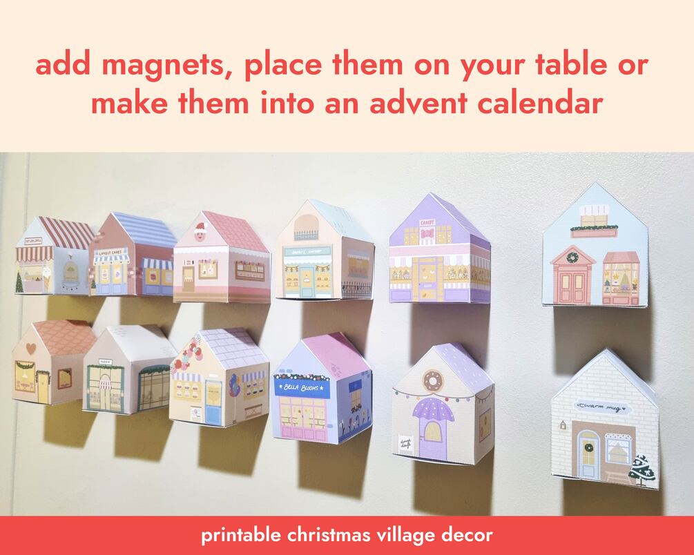 Christmas Village Printable Craft for Christmas Houses Xmas Decor Holidays Decoration Christmas Shops Christmas Advent Calendar Printable