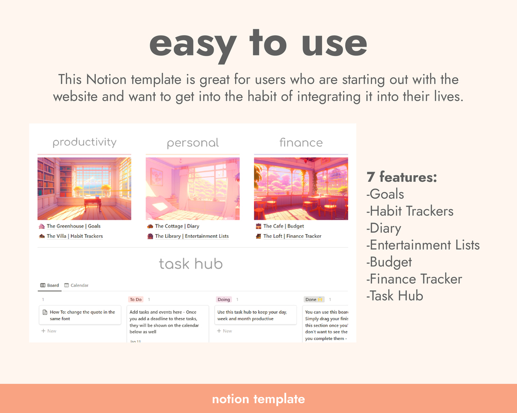 Notion Template for Productivity Easy to use Notion Template for Habit Tracker with Cute Notion Theme for Beginners