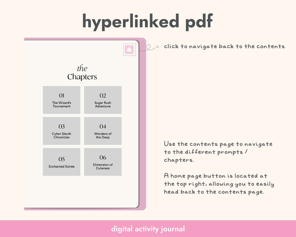 This digital journal can be used in apps such as Goodnotes (PDF annotation apps that support hyperlinks).