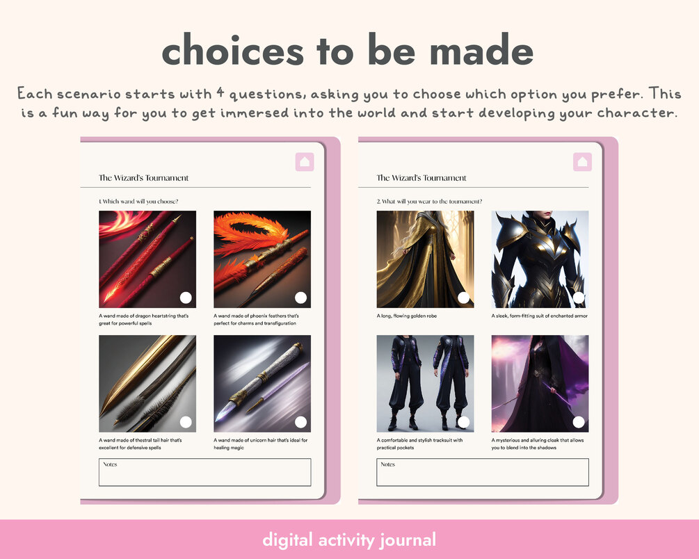 Start by and making choices for the start of the story with immersive world building images and use those to shape the story. This is a great way to have fun if you love writing and choosing your own scenario kind of games. Put you creativity in to play and see what kind of fun stories you come up with!