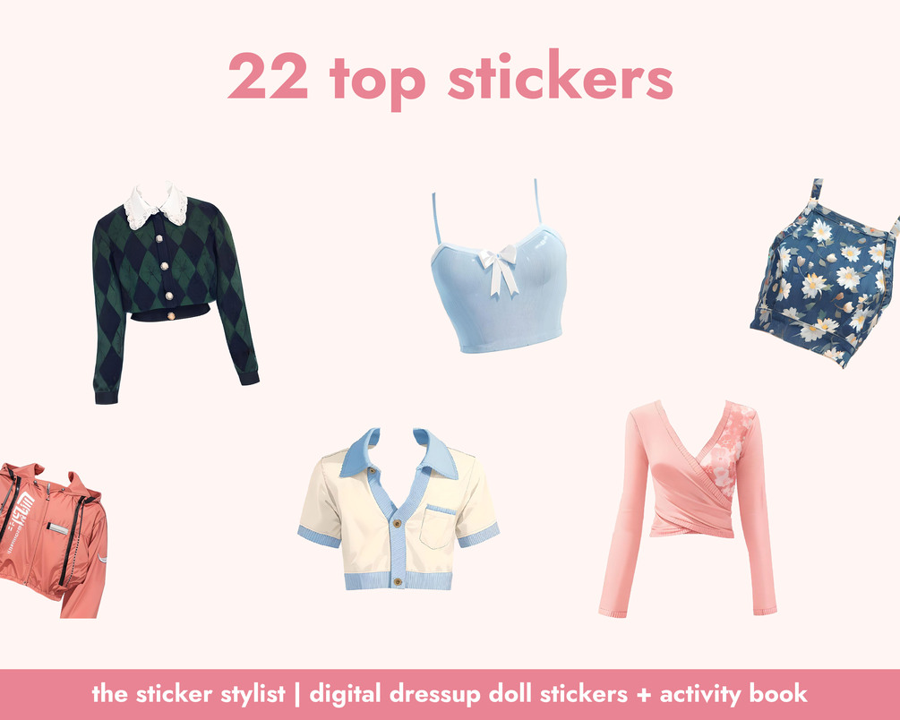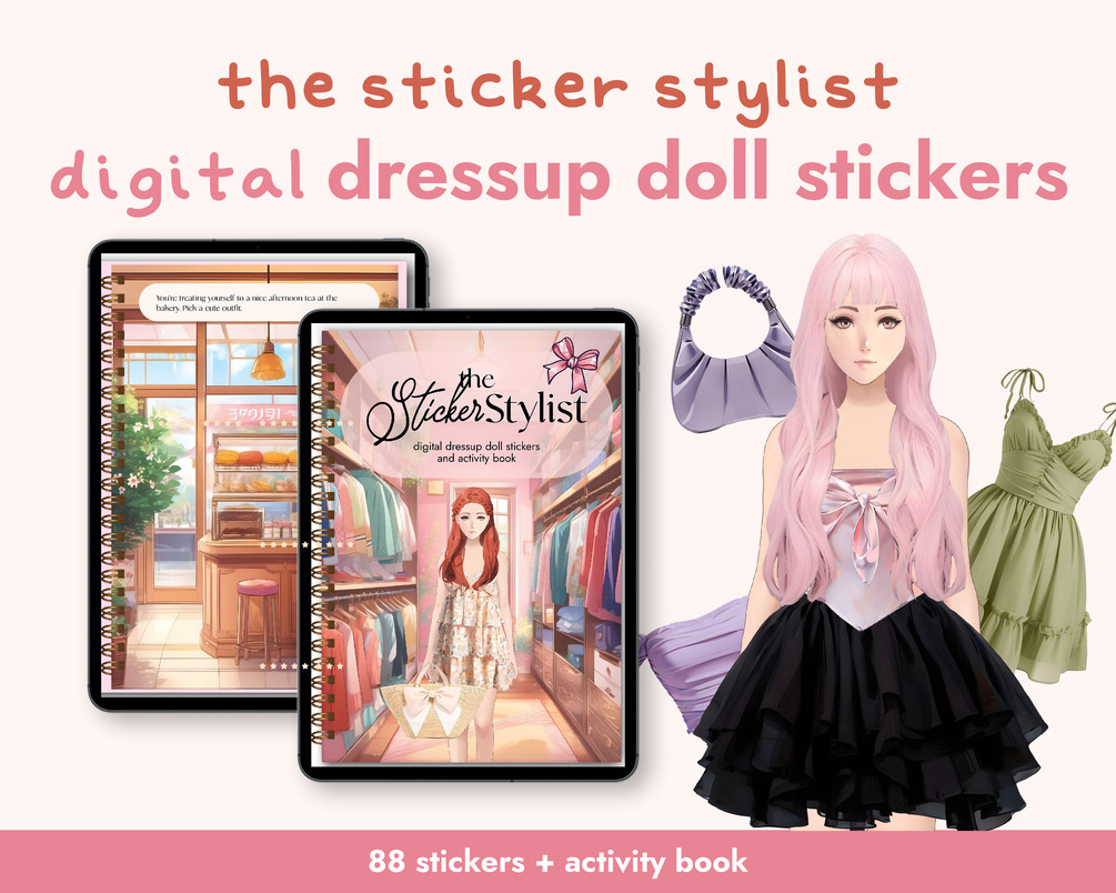 Unleash your inner fashionista with this digital Sticker Stylist. A digital dressup doll sticker pack and activity book!