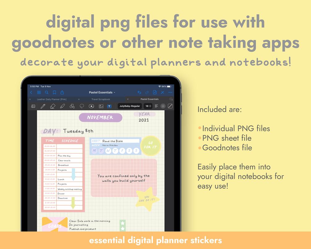 Digital Planner Stickers in Pastel Color Essential Goodnotes Stickers for Digital Journal List Stickers with Habit Tracker