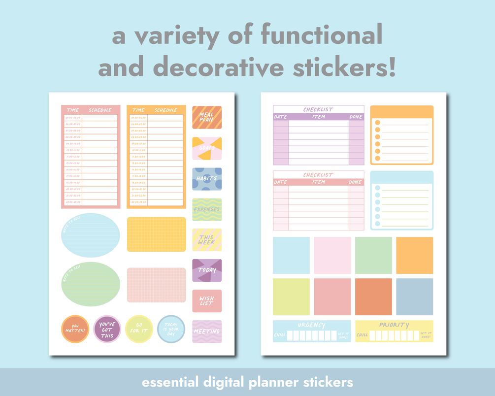 Digital Planner Stickers in Pastel Color Essential Goodnotes Stickers for Digital Journal List Stickers with Habit Tracker