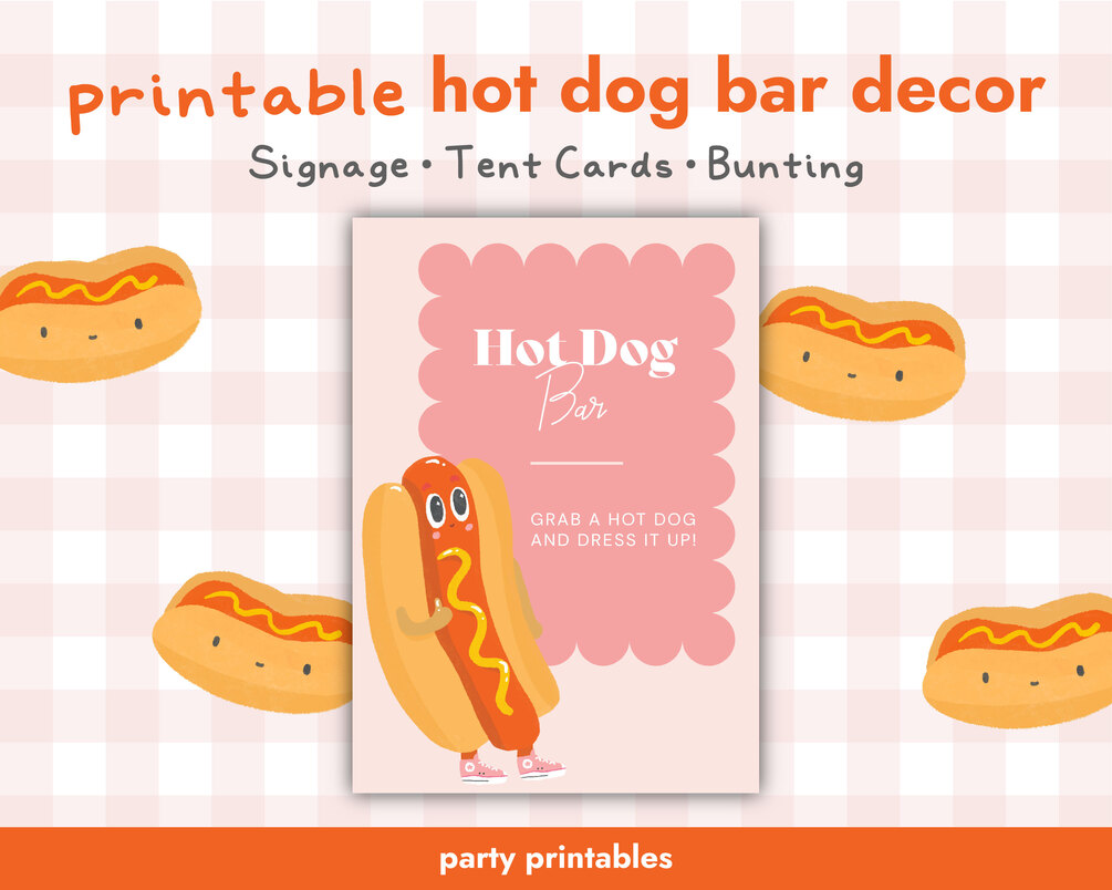 Hot Dog Party | Downloadable Party Pack | Signage, Bunting, Tent Cards