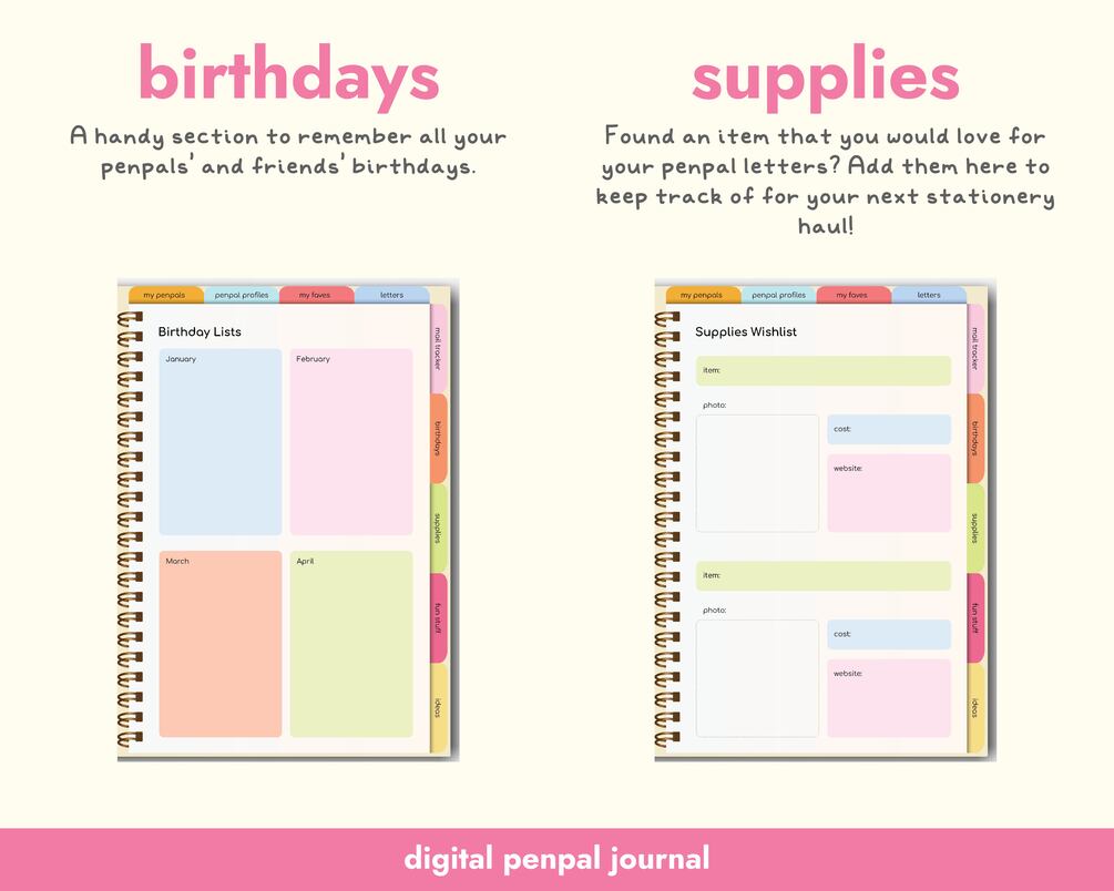 Cute Digital Penpal Journal with Colorful Design Goodnotes Journal for Penpal Letter Planner for Snail Mail Tracker