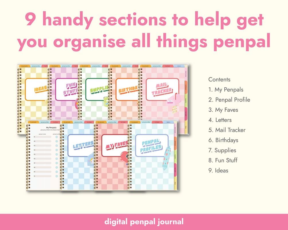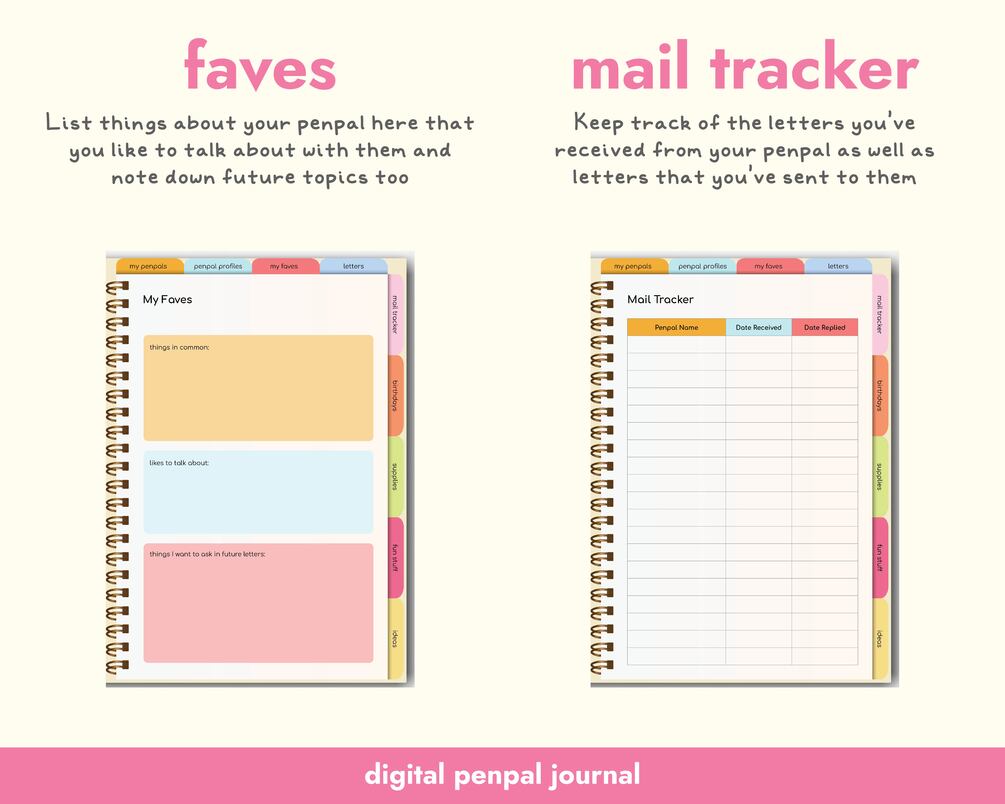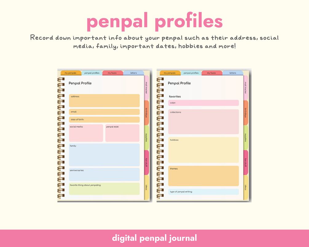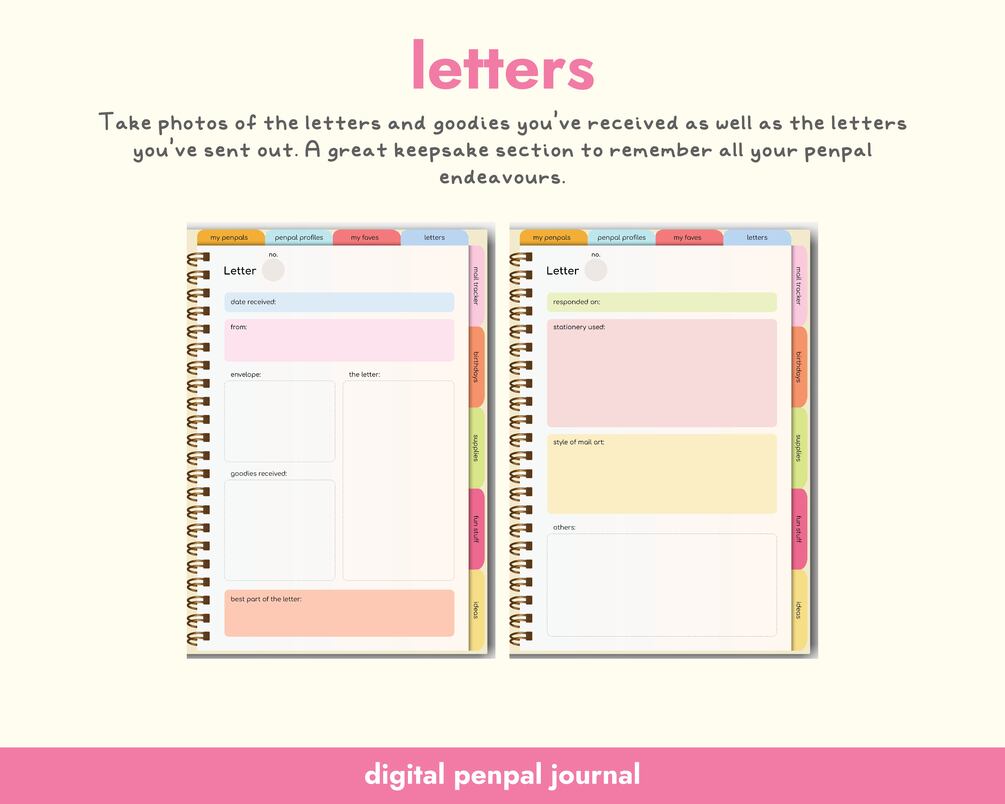 Cute Digital Penpal Journal with Colorful Design Goodnotes Journal for Penpal Letter Planner for Snail Mail Tracker