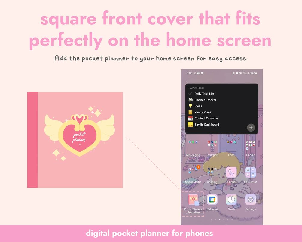 This pretty pink digital pocket planner is made for you to use on your mobile phone! Its easy to use interface makes it quick to navigate and jot down notes.